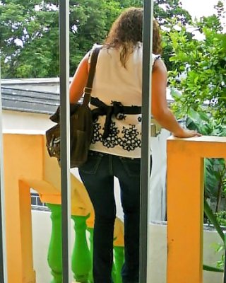ジジ・アレンズは、隣人のプレストンが窓の中を覗いているのを発見する。