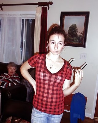 赤毛のジュリー・アン・モアがたわわに実った乳房と巨大な尻を見せる