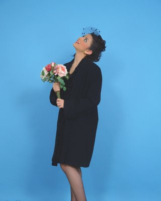 ストッキングに身を包んだブロンドの女の子の写真