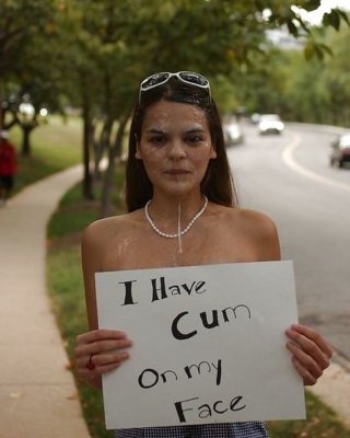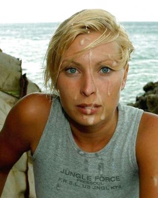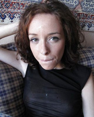 ブロンドのかわいこちゃんがあごに大量のザーメンを受ける