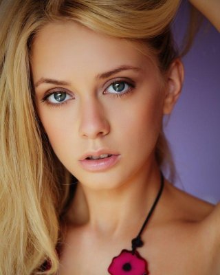 ブロンドの少女アンブラの写真は、彼女のタイトな裸のティーンの体を示す