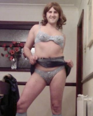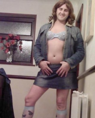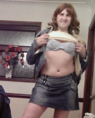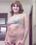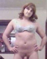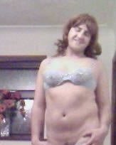 年配の女性ロシがブラと短いデニムスカートを脱いで裸になる