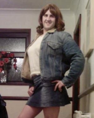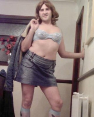 ブロンド娘のドンナがデニムのスカートと下着を脱いでいる。