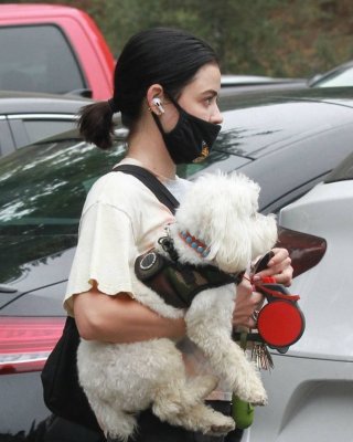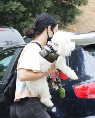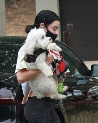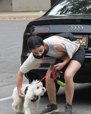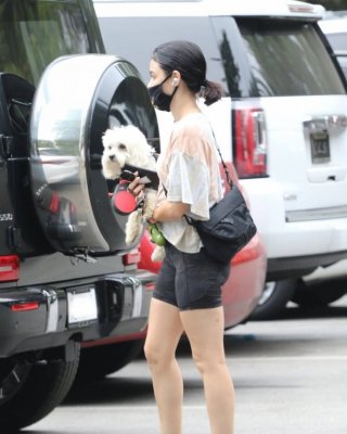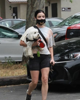 ビバリーヒルズで買い物中のルーシー・ヘイル、スケスケの黒のトップスとショートパンツを着用