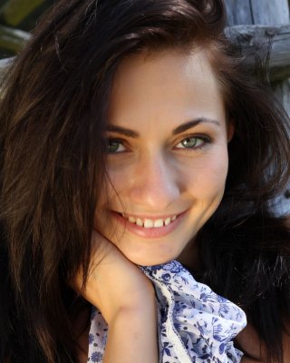 足の長いMichaela isizzuが森の中で裸のスカートを見せてヌードポーズをする