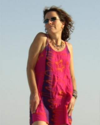 太ったママがプールでストッキングを履いてトップレスでポーズをとるサンディ・スパイン